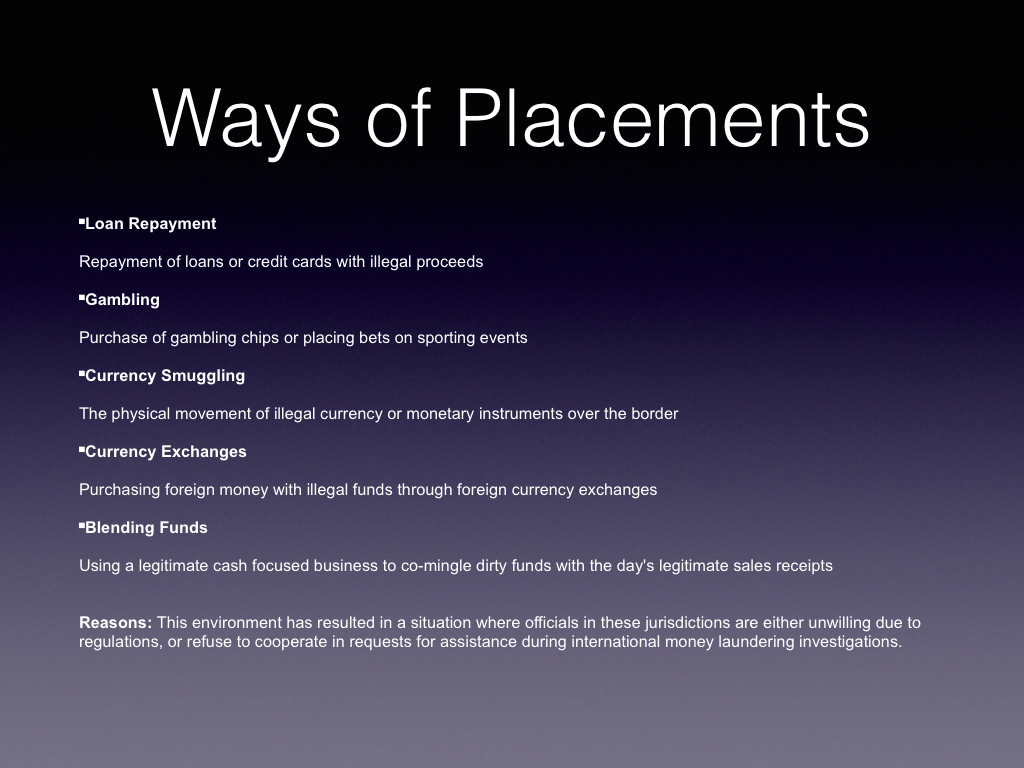 In this example, placement may require additional information such as examples of where or what placement means. I would begin by eliciting answers from the class examples of placement. At this stage, I would write all responses no matter if they are right or wrong. Lastly, I would reveal the ways one by one.